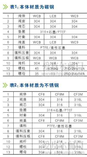 內(nèi)件材質(zhì):標(biāo)準(zhǔn)材質(zhì)組合及使用溫度、壓力范圍請參閱附錄